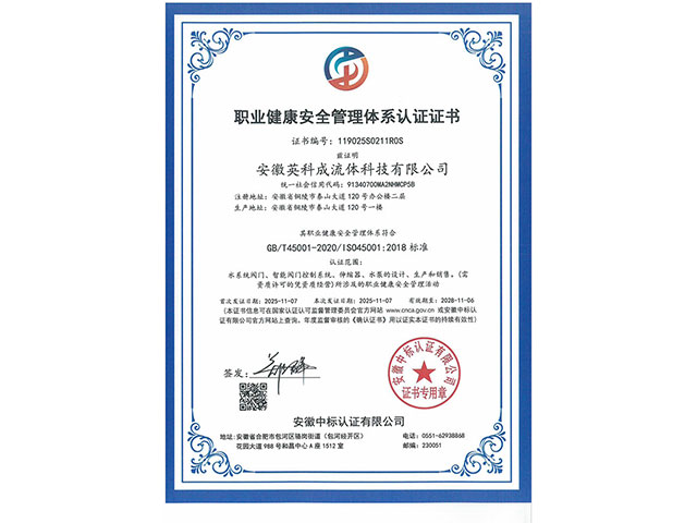 • 職業健康安全管理體系認證證書